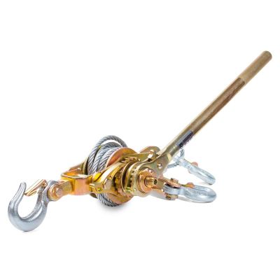 •Два режима работы: с блоком и без блока; •Усиленный фрикционно-храповой механизм с переключателем обеспечивает пошаговое натяжение; •Тяговое усилие: с блоком: 3.0 т; без блока: 1.5 т; •Длина троса: с блоком 1.6м; без блока 3.2 м (± 0.1 м); •Диаметр троса: 7.8 мм; |