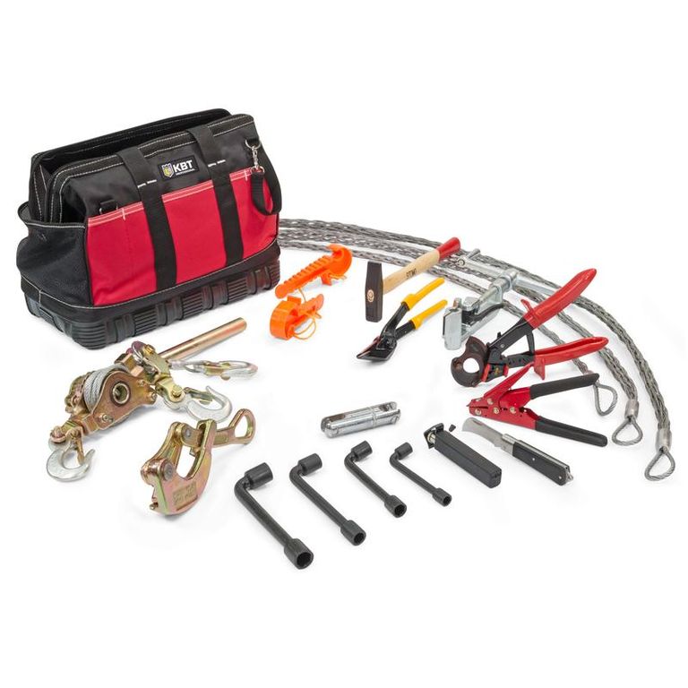 •Инструмент ИН-20 для натяжения стальных лент; •Ножницы НМ-20 для резки стальных лент; •Ножницы кабельные НС-32; •Лебедка ЛР-15; •Монтажный зажим МЗ-22; •Вертлюг ВМ-15; •Чулки монтажные (ЧМ-10/20, ЧМ-20/30, ЧМ-30/40); •Нож монтерский НМ-02; •Стриппер КС-25; •Инструмент для монтажа стяжек TG-03; •Клинья отделительные КО; •Ключи торцевые изогнутые (10, 13, 17, 19 мм); •Молоток ММ-300; —Всего в наборе: 18 предметов в сумке электромонтажника С-01 |