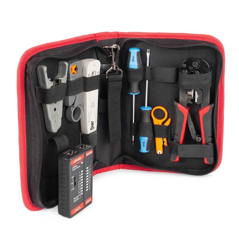 •инструмент для заделки витой пары PD-01 (КВТ); •инструмент для заделки витой пары PD-04 (КВТ); •пресс-клещи для RJ разъемов JT-02 (КВТ); •коаксиальный стриппер КС-332 (КВТ); •стриппер для разделки UTP кабелей КС-501 (КВТ); •LAN-тестер кабельный 468C (КВТ); •отвертка шлиц 4х100; •отвертка PH 1х100 |